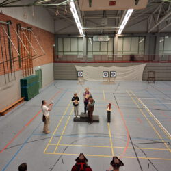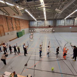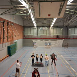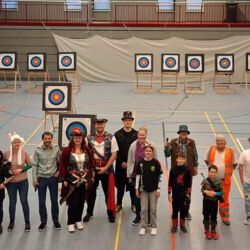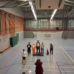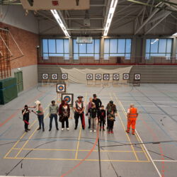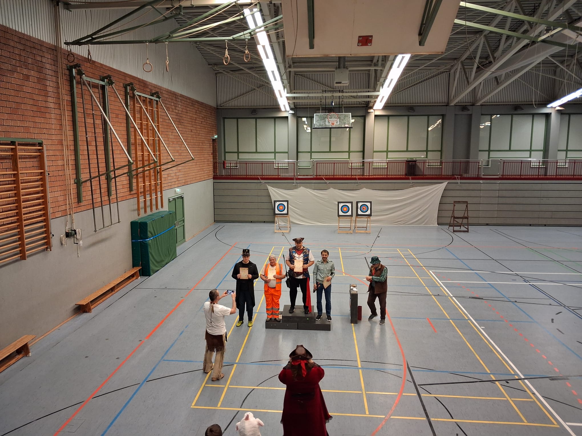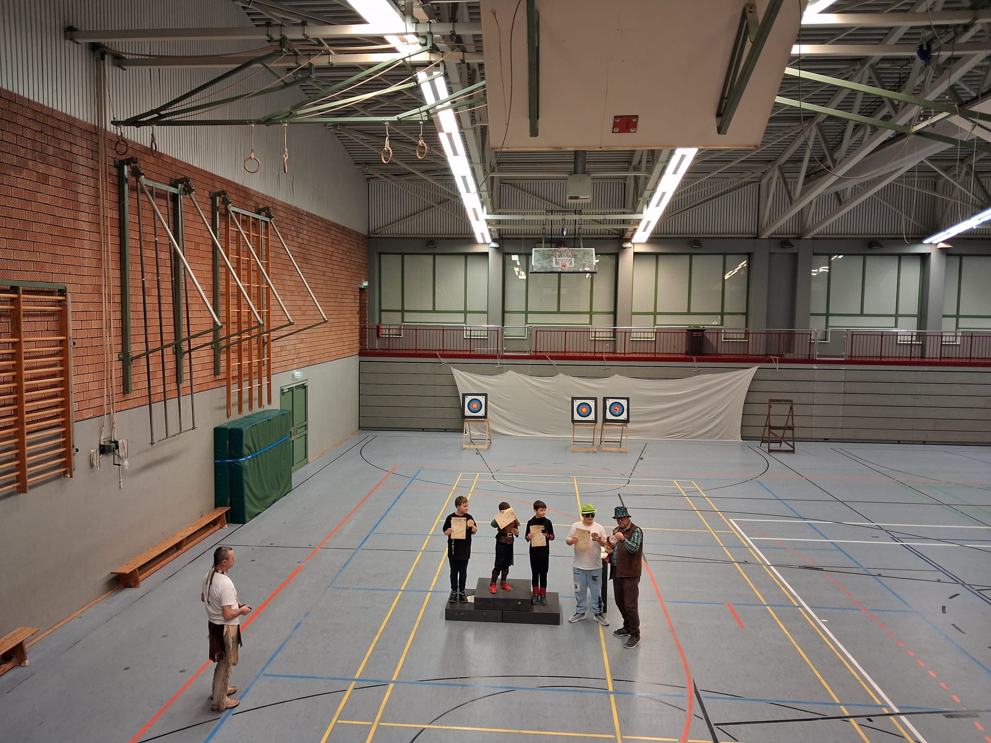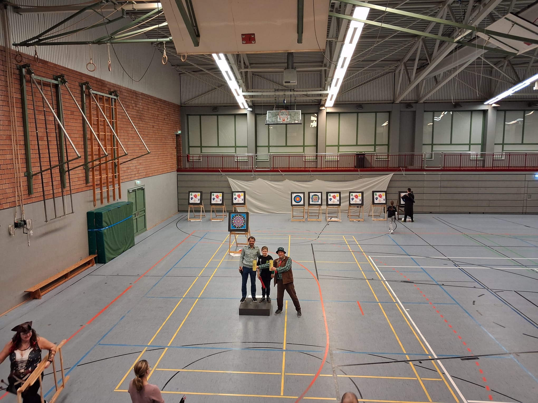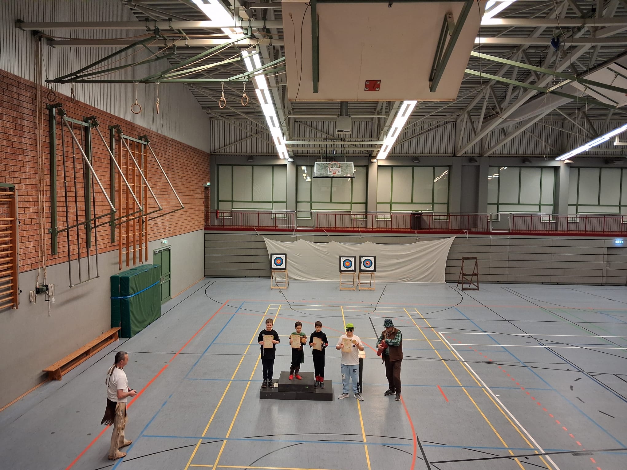 Der erste Versuch am 6.6.2026 fiel bedingt durch den Eisregen und die Schließung des Gymnasiums aus. Aber nicht ersatzlos. Der zweite Versuch wurde am 27.02.2026 gestartet und diesmal erfolgreich. Auch der dezente Hinweis auf stark erhöhtes Startgeld, beim Erscheinen ohne Kostüm wurde beachtet. Es waren so Piraten, Mitarbeiter der Schutzpolizei, polnische Gurkenpflücker aus dem Spreewald, Gothic Punk Vernarrte usw. dabei.Pünktlich, 10 Minuten später als geplant, ging es los. Drei Runden einschießen und die extra angefertigten Scheibenauflagen wurden erläutert. Geplant waren 14 Runden a 3 Pfeile. Das konnten wir diesmal sogar einhalten. Nach 7 Runden durften sich alle Teilnehmer erstmal stärken. Es gab Pfannkuchen satt, Kaffee satt, Wasser und Apfelschorle. Die letzten 7 Runden sind dann relativ schnell vergangen, bis auf die Schützen die einige Runden nachschießen mussten. Aber Alle sollten die Chance haben einen tollen Preis zu erhalten. In der Zeit der Auswertung und der Urkunden geschrieben wurden, gab es eine Sonderwertung. Getrennt nach Kinder und Erwachsene ging es um den goldenen Löffel. Gewinner waren hier Jörg und Ole. Sie hatten auf der Dartscheibe und beim Bingo die höchste Trefferzahl. Auch bei der Siegerehrung gab es leichte Probleme, da wir nun insgesamt 4 zweite Plätze hatten und Keiner einen Entscheidungspfeil schießen wollte. Aber auch das konnte elegant gelöst werden. Diesmal gab es besondere Preise. Individuell gefertigte Untersetzer für die Überlebenden des Wintersturms Elli und erstmalig wurde unsere neuen Werbeflyer vorgestellt. Jeder Teilnehmer erhielt auch den Flyer. Auch im nächsten Jahr gibt es wieder ein Faschingsturnier, angeleitet von Robin Hood. Versprochen.