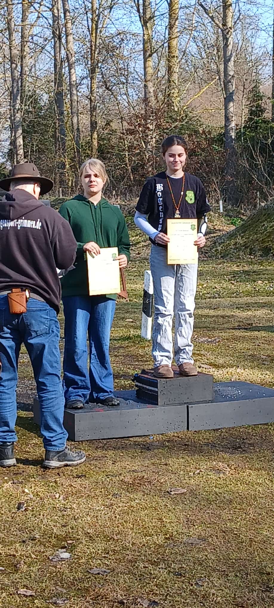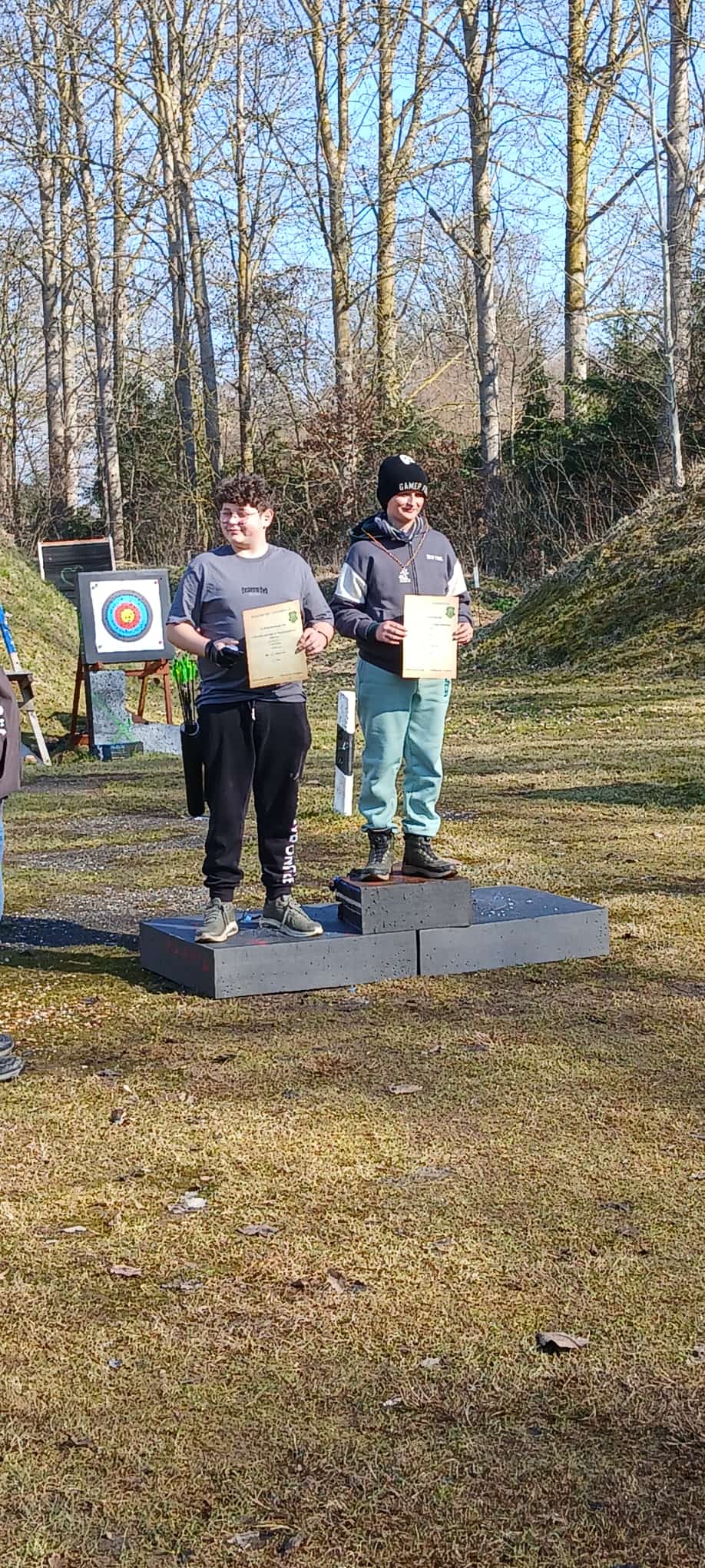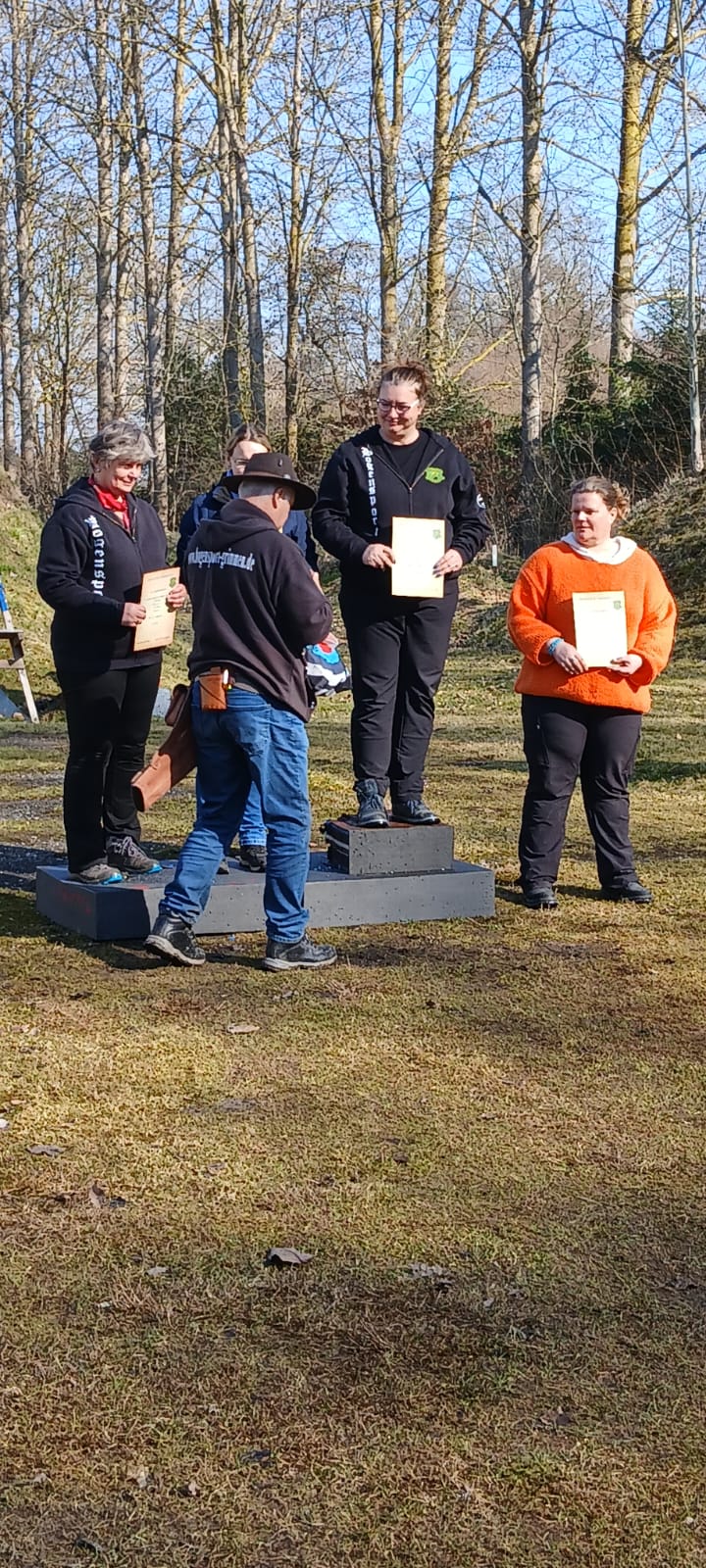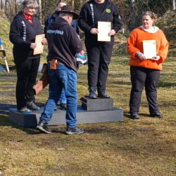 Auch am Sonntag ging es weiter. Überpünktlich ging es mit dem 3D Eröffnungsturnier los. Nach kurzer Ansprache und Einweisung wurden die Rotten zu den Zielen geschickt. Der Aufbau war diesmal erfolgreich gewesen. Es gab nur minimale Änderungswünsche zum Aufbau. Nach knapp 1,5 Stunden war die erste Runde geschafft. Bei der Auswertung stellte sich heraus, dass eigentlich ein Entscheiungspfeil geschossen werden müsste. Aber beide wollten dies nicht. So hatten wir eben zwei zweite Plätze. Gewonnen hat bei den Kindern, Mariella, bei den Jugendlichen, Lina und Matheo, bei den Herren Christian und bei den Damen Conny. Die höchste Punktzahl erreichte Lina. Dafür gab es eine Zielscheibe und Mathilda bekam einen kleinen Pokal.