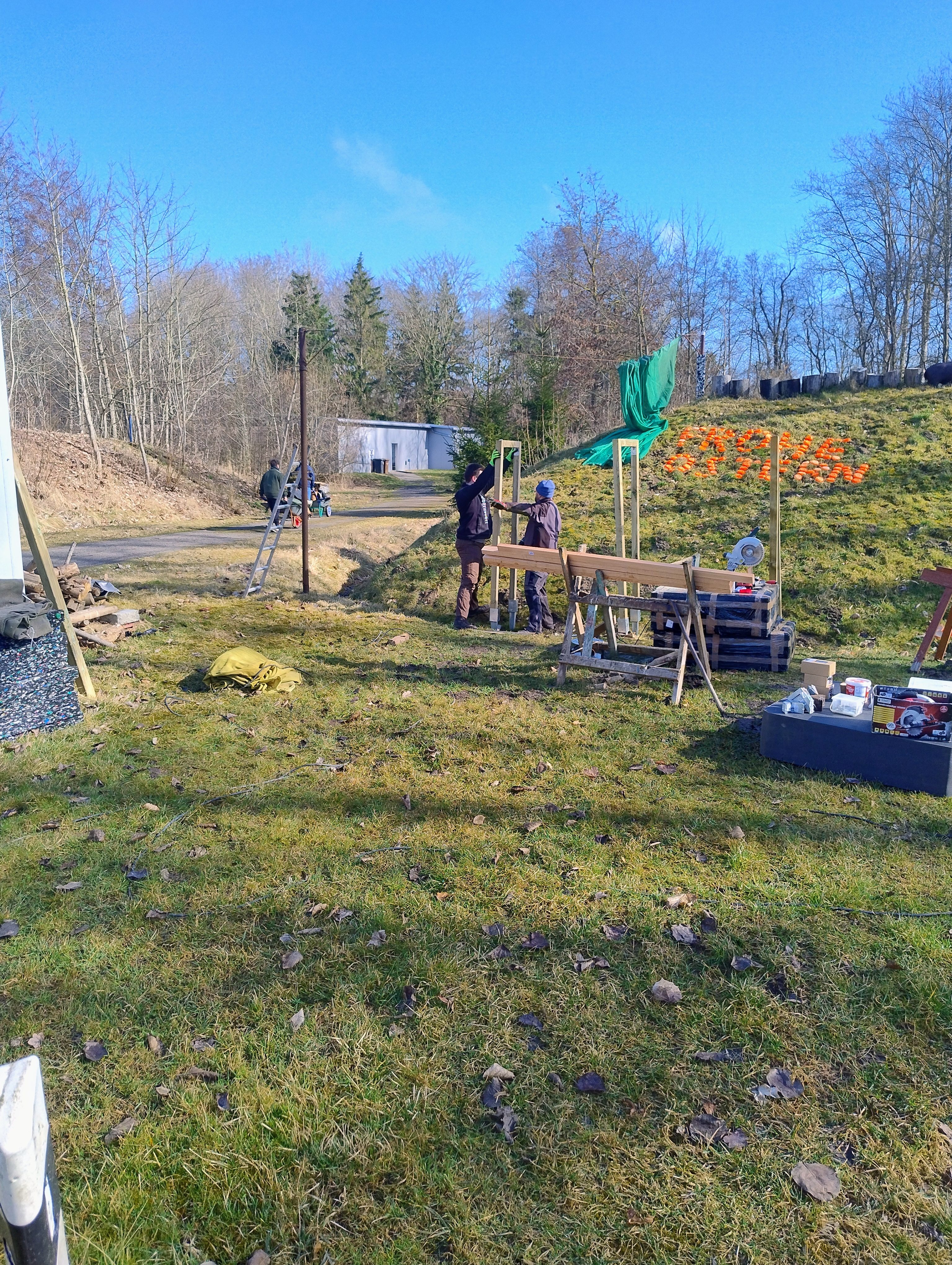 Der Winterschlaf wurde pünktlich beendet und am 21.03.2026 ging es schon mit dem Arbeitseinsatz los. Aufgerufen dazu wurde beim Training, über die Homepage und unseren WhatsApp Kanal. Der Platz hatte über Winter doch stark gelitten. Es wurde die Fläche geharkt, alte Ständer entsorgt, die Netze wurden aufgehängt und der Vogelberg leicht verändert.
